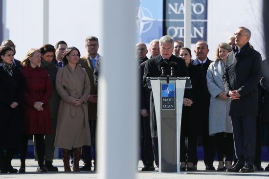 4月4日,在比利時布魯塞爾的北約總部,芬蘭總統(tǒng)尼尼斯托在芬蘭加入北約儀式上發(fā)言。新華社記者鄭煥松攝