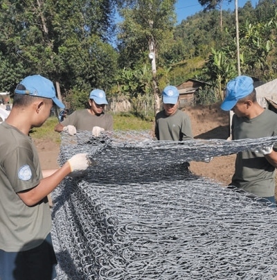 自去年9月部署到任務(wù)區(qū)以來,第二十六批維和工兵分隊(duì)已完成32項(xiàng)工程任務(wù)、26項(xiàng)工程勘察,累計(jì)修筑道路52公里、搭建板房50間、構(gòu)筑圍墻2100米。今年5月,南基伍省卡萊亥地區(qū)遭受強(qiáng)降雨和洪水災(zāi)害,造成400多人死亡,上千座民居被沖毀。關(guān)鍵運(yùn)輸線路上的魯濟(jì)拉橋被洪水沖垮,切斷了人道主義援助物資的運(yùn)輸線,給當(dāng)?shù)孛癖娊煌ǔ鲂泻涂购榫葹?zāi)造成嚴(yán)重影響。工兵分隊(duì)接到任務(wù)后,第一時(shí)間奔赴災(zāi)區(qū)一線,在河邊安營扎寨,執(zhí)行工程救援。7月,嶄新的魯濟(jì)拉橋已經(jīng)順利完工。