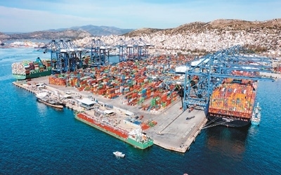 2022年2月19日拍攝的希臘比雷埃夫斯港集裝箱3號碼頭。作為共建“一帶一路”倡議的典范項(xiàng)目,希臘比雷埃夫斯港年貨物吞吐量達(dá)500萬標(biāo)箱以上。新華社發(fā)