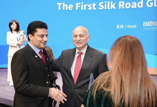 穆沙希德10月19日參加2023“一帶一路”媒體合作論壇并代表國際傳播“絲路獎”獲獎?wù)甙l(fā)言。
