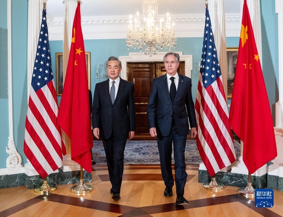 10月26日,中共中央政治局委員、外交部長王毅在應邀訪美期間在華盛頓同美國國務卿布林肯舉行會談。新華社發(fā)