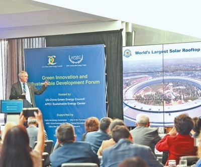 當?shù)貢r間11月13日,由亞太經(jīng)合組織可持續(xù)能源中心和美中綠色能源促進會共同主辦的“綠色創(chuàng)新與可持續(xù)發(fā)展論壇”在舊金山舉行,與會嘉賓就清潔能源、綠色發(fā)展、共同應對氣候變化等議題交流研討。本報北美中心分社 伊芙莉·妮可·梅菲爾德攝
