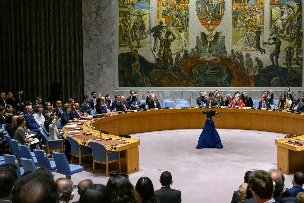 這是12月8日在位于紐約的聯(lián)合國(guó)總部拍攝的聯(lián)合國(guó)安理會(huì)會(huì)議現(xiàn)場(chǎng)。美國(guó)當(dāng)天否決了聯(lián)合國(guó)安理會(huì)一份旨在推動(dòng)實(shí)現(xiàn)巴以人道主義停火的決議草案。新華社發(fā)(聯(lián)合國(guó)供圖/洛伊·費(fèi)利佩攝)