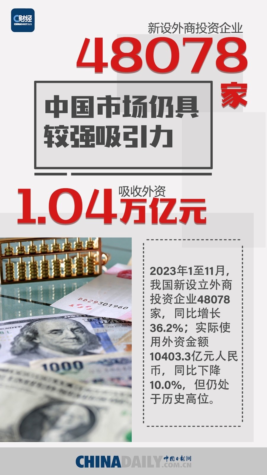 2023年,在世界經(jīng)濟(jì)復(fù)蘇乏力、全球貿(mào)易增長持續(xù)低迷的情況下,中國外貿(mào)發(fā)展頂住壓力,促穩(wěn)提質(zhì),外貿(mào)新產(chǎn)品、新業(yè)態(tài)的潛力持續(xù)釋放。與此同時(shí),我國外資政策效應(yīng)逐步顯現(xiàn),吸引外資的結(jié)構(gòu)持續(xù)優(yōu)化,外資企業(yè)來華投資勢頭不減。
