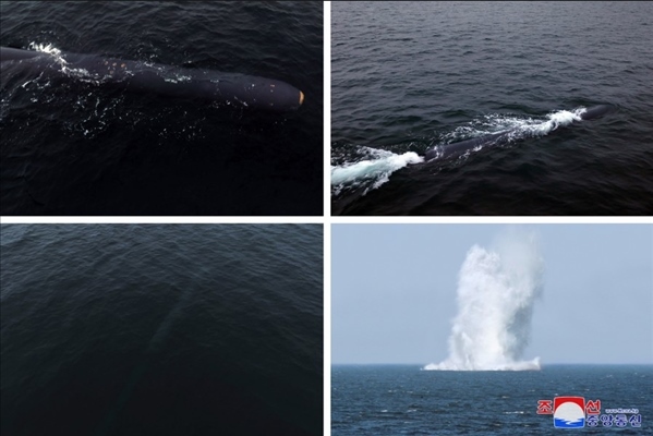去年3月,朝鮮進(jìn)行了一系列軍事訓(xùn)練活動(dòng),包括新型水下攻擊武器系統(tǒng)試驗(yàn),其中,“海嘯”的核無(wú)人潛水攻擊艇首次亮相。試驗(yàn)在朝鮮咸鏡南道利原郡海岸進(jìn)行,在80米至150米深度潛航了約59小時(shí),最后到達(dá)假想敵人港口的洪原灣水域目標(biāo)點(diǎn)爆炸。一個(gè)月后朝鮮公開(kāi)了“海嘯-2”型核無(wú)人潛水攻擊艇,朝方稱,該艇進(jìn)行了71小時(shí)、1000千米的潛航試驗(yàn),驗(yàn)證了潛水式戰(zhàn)略武器系統(tǒng)的可靠性和致命打擊能力。