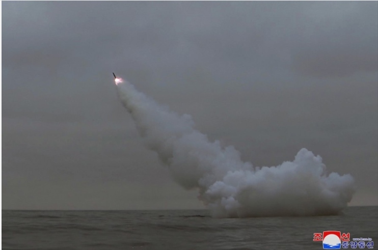 朝鮮公開(kāi)潛射戰(zhàn)略巡航導(dǎo)彈試射照片。