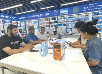 最近,埃馬紐埃爾又開(kāi)始關(guān)注新能源產(chǎn)品?!翱溌∫恍┑胤酱嬖陔娏Χ倘?、供電不穩(wěn)的問(wèn)題,很多當(dāng)?shù)厝讼M夷茉谥袊?guó)找到合適的產(chǎn)品?!睘榇?,他把目標(biāo)瞄準(zhǔn)了義烏國(guó)際商貿(mào)城的新能源產(chǎn)品市場(chǎng),尋找到一些適合喀麥隆的光伏設(shè)備?!爸袊?guó)的新能源產(chǎn)品性能可靠、性?xún)r(jià)比高,產(chǎn)品品類(lèi)覆蓋領(lǐng)域廣泛?!卑qR紐埃爾表示,大到醫(yī)療機(jī)構(gòu),小到禽畜養(yǎng)殖場(chǎng),中國(guó)光伏設(shè)備供應(yīng)的電力有助于滿足當(dāng)?shù)孛癖娚a(chǎn)生活的用電需求。
