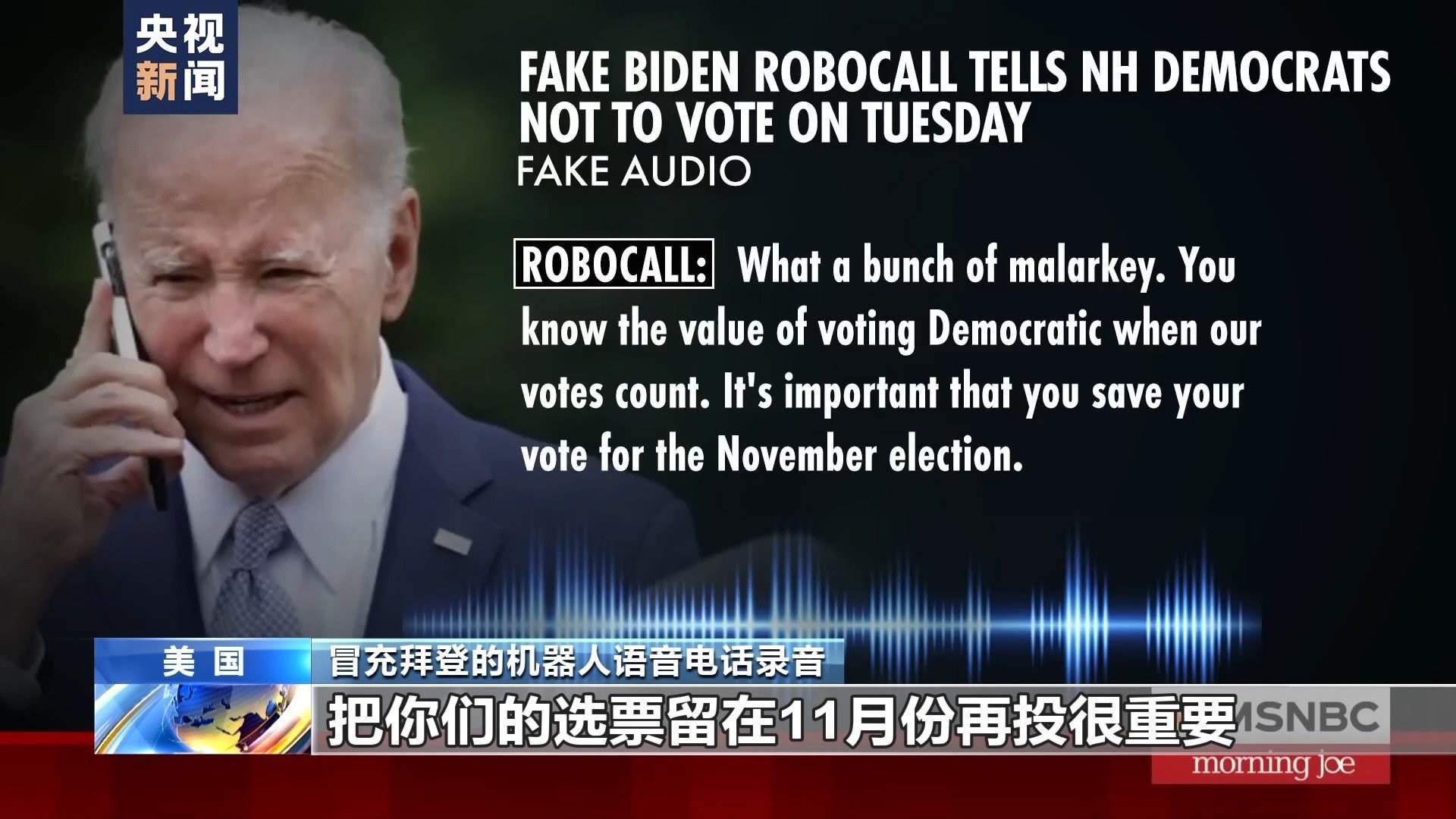 冒充拜登的機(jī)器人語(yǔ)音電話(huà)錄音:把你們的選票留在11月份再投很重要。在這周二(23日)投票,只會(huì)讓共和黨人得逞,讓特朗普再次當(dāng)選為共和黨候選人。