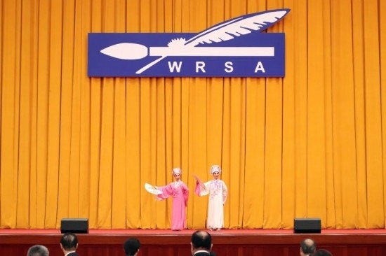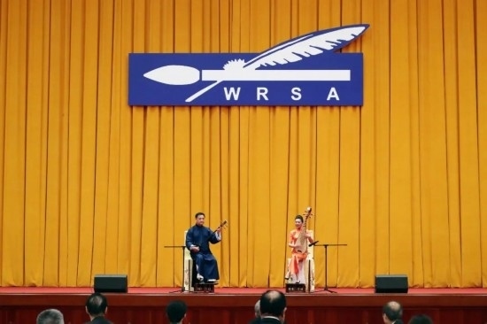 聯(lián)誼會現(xiàn)場,中央民族歌舞團,浙江小百花越劇院、蘇州市評彈團的藝術家們?yōu)樵趫黾钨e奉上了民族器樂合奏《五色風情》、越劇《十八相送》、評彈《姑蘇好風光》、歌舞劇《同心共圓中國夢》等文藝節(jié)目,為中外嘉賓帶來一場別具特色的視聽盛宴。