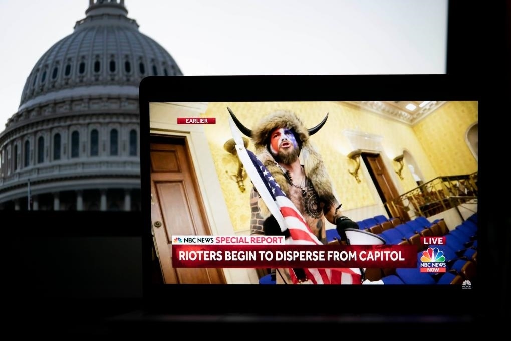 2021年1月6日拍攝的電視畫面顯示,一名抗議者闖入位于美國華盛頓的國會(huì)大廈。新華社記者劉杰攝