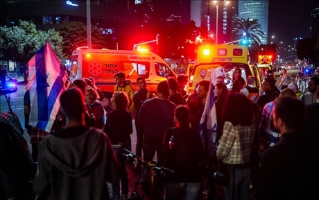 當(dāng)?shù)貢r間6日晚,在特拉維夫舉行的反政府集會上,一輛汽車突然沖撞人群,造成5名抗議者受傷 圖源:《以色列時報》