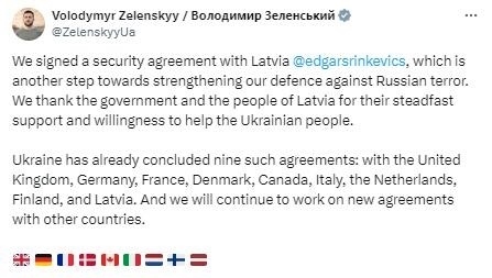 同日早些時候,澤連斯基在另一條貼文中宣布,烏克蘭已經(jīng)與英國、德國、法國、丹麥、加拿大、意大利、荷蘭、芬蘭和拉脫維亞簽署了雙邊安全協(xié)議。他還稱,“烏克蘭將繼續(xù)努力與其他國家達(dá)成新協(xié)議?!?/p>