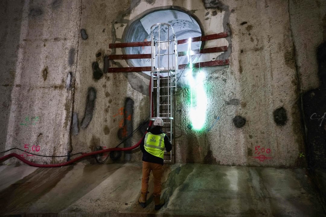 當(dāng)?shù)貢r(shí)間2024年3月13日,法國(guó)巴黎,建造中的巨型地下雨水蓄水池施工現(xiàn)場(chǎng)。