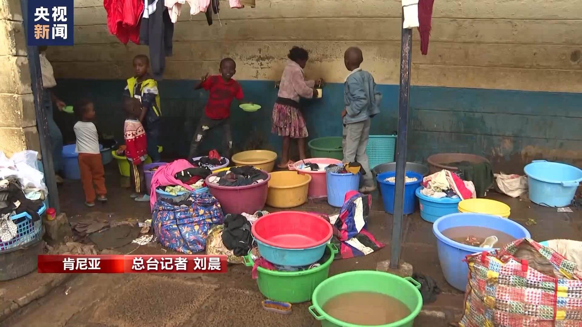 總臺記者 劉晨:這里是位于肯尼亞首都內(nèi)羅畢市中心馬薩雷貧民窟里的一所小學,因為洪災失去住所的居民們被臨時安置在這里。由于暴雨影響,肯尼亞當?shù)貙W校的開學時間從本周又向后推遲了一周?,F(xiàn)在我身后這樣的教室已經(jīng)被改造成了臨時寢室,供災民休息。政府送來了棉被和枕頭,每天也會定時為這里的難民提供食物。
