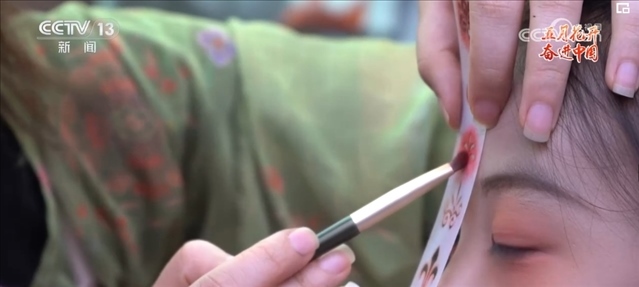 花鈿是古代女性在額頭部位點(diǎn)綴的一種花飾。現(xiàn)在的胡芯銀,不僅會(huì)根據(jù)顧客的年齡、臉型和服裝的樣式來(lái)搭配不同風(fēng)格的花鈿,還會(huì)給小姐姐們做一些傳統(tǒng)文化的講解。胡芯銀說(shuō),要想做得更好,就要多看多學(xué)。