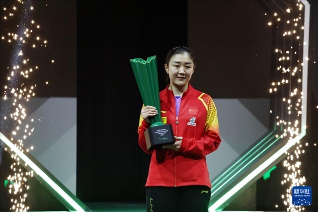 第五局,背水一戰(zhàn)的孫穎莎主動出擊,以11:6贏下這一局。第六局,孫穎莎失誤偏多,陳夢5:1領先,占得先機。局末,陳夢一波得分高潮取得10:4領先。孫穎莎連續(xù)化解4個賽點后,陳夢利用發(fā)球強攻終于拿到了關鍵的1分,11:8贏得這一局,總比分4:2擊敗孫穎莎奪冠。