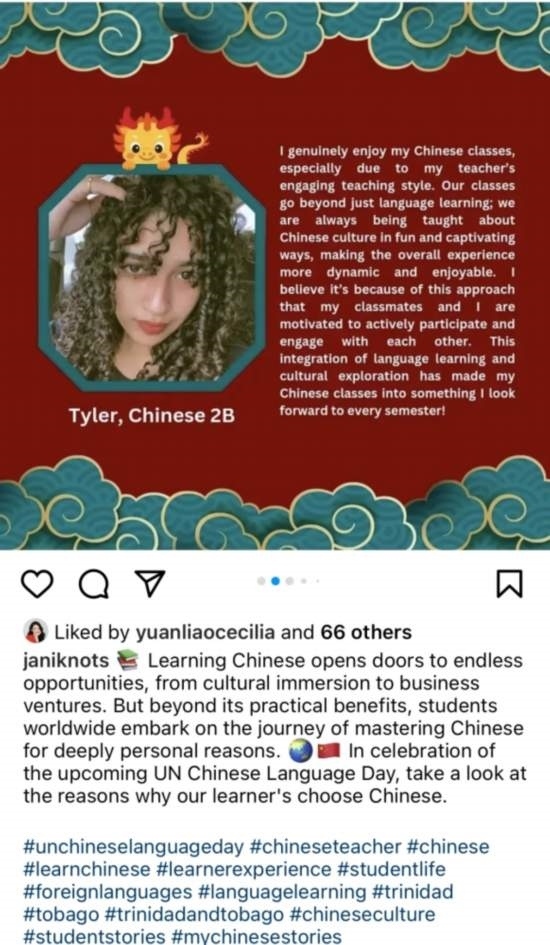 第十五個(gè)聯(lián)合國(guó)中文日和第五個(gè)“國(guó)際中文日”舉辦期間,中外語(yǔ)言交流合作中心與中國(guó)日?qǐng)?bào)網(wǎng)聯(lián)合發(fā)起 “國(guó)際中文日”系列線上活動(dòng),鼓勵(lì)大家講述、分享與中文相遇的精彩故事,半個(gè)月內(nèi)活動(dòng)參與者覆蓋全球五大洲近70個(gè)國(guó)家和地區(qū),包括英國(guó)、意大利、澳大利亞、美國(guó)、巴西、日本、韓國(guó)、泰國(guó)、老撾、迪拜、喀麥隆等,作品超2000件,閱讀量超1000萬(wàn),在中國(guó)和其他國(guó)家主流社交媒體平臺(tái)掀起“中文日”熱潮,吸引了海內(nèi)外網(wǎng)友的廣泛關(guān)注。
