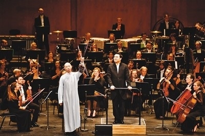 2005年,果敢在巴黎議會(huì)宮同巴黎歌劇院交響樂隊(duì)合作演出。頭頂是聚光燈,身后是150人組成的交響樂隊(duì),二胡的兩根弦拉響,身穿白色長袍、剃著光頭的他一下被人們記住。