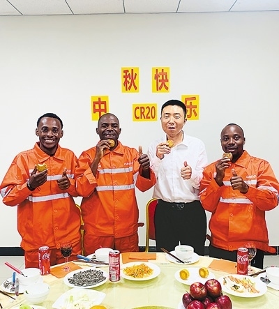 中安員工共同品嘗月餅。中鐵二十局安哥拉國際公司供圖