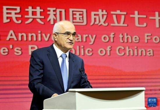 9月26日,阿塞拜疆政府副總理沙欣·穆斯塔法耶夫在巴庫舉行的慶祝中華人民共和國成立75周年招待會(huì)上致辭。新華社發(fā)(巴巴耶夫攝)