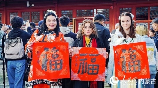 人民網(wǎng)呼和浩特10月23日電 (張聿修、孟佳澍、張雪冬、實(shí)習(xí)生朱昱晗)福“倒”了??!暗健绷?!擺弄著手中的福字,了解到關(guān)于福字的寓意,塔吉克斯坦記者烏斯蒙·阿卜杜恰洪洛夫露出驚訝的表情,感嘆中國(guó)語(yǔ)言蘊(yùn)含的智慧。