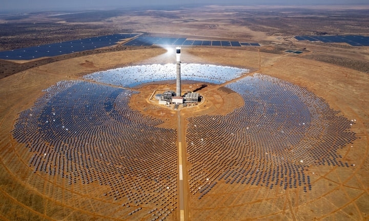 這是2024年8月20日在南非北開普省拍攝的南非紅石100兆瓦塔式熔鹽光熱電站項(xiàng)目(無(wú)人機(jī)照片)。由中國(guó)電建集團(tuán)山東電建三公司承建的南非紅石100兆瓦塔式熔鹽光熱電站項(xiàng)目是撒哈拉以南非洲首個(gè)塔式熔鹽光熱電站項(xiàng)目,也是南非最大可再生能源投資項(xiàng)目之一。新華社記者 張譽(yù)東 攝