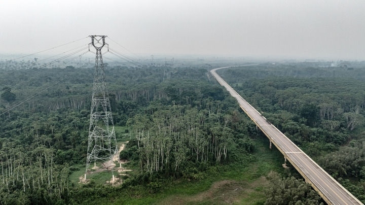 這張2024年9月13日拍攝的照片顯示,在巴西朗多尼亞州,EDP輸變電項(xiàng)目線路穿越熱帶雨林(無(wú)人機(jī)照片)。巴西EDP輸變電項(xiàng)目是位于巴西北部的阿克里州和朗多尼亞州的綠地輸變電工程,山東電建一公司承擔(dān)了該項(xiàng)目的EPC總承包任務(wù)。項(xiàng)目全面完成后,將極大提升當(dāng)?shù)仉娋W(wǎng)的輸電能力,增強(qiáng)電力供應(yīng)的可靠性和穩(wěn)定性,對(duì)巴西北部地區(qū)的可持續(xù)發(fā)展和經(jīng)濟(jì)增長(zhǎng)具有重要意義。新華社記者 王天聰 攝