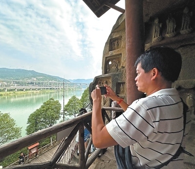 老撾《萬(wàn)象時(shí)報(bào)》記者索薩坤·萬(wàn)喬在參觀廣元千佛崖時(shí),拍攝飛馳而過(guò)的動(dòng)車(chē)組列車(chē)。老撾國(guó)家通訊社記者 汶娜萊·楠坎娜攝