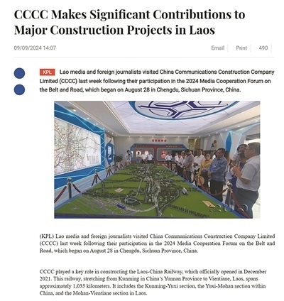中老媒體高質(zhì)量共建“一帶一路”聯(lián)合采訪團(tuán)來(lái)到了四川省會(huì)成都市,這座城市美麗的風(fēng)光、雄偉的建筑、祥和的氛圍給人留下了深刻印象。采訪團(tuán)一行探訪了成都國(guó)際鐵路港,這是連接老撾等多個(gè)國(guó)家的交通樞紐。老中鐵路經(jīng)此而過(guò),源源不斷地在老撾與中國(guó)之間輸送著包括農(nóng)產(chǎn)品在內(nèi)的各類(lèi)物資,極大地促進(jìn)了雙邊貿(mào)易的發(fā)展?!蠐搿栋吞劐紙?bào)》報(bào)道