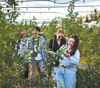 采礦不見礦,黃土披綠裝。礦山復(fù)墾區(qū)的千畝林果示范園里,一片郁郁蔥蔥的果園映入眼簾,蘋果、李子、梨、杏等果樹枝葉繁茂,果實(shí)累累。品嘗著甘甜的果實(shí),北京石油化工學(xué)院烏茲別克斯坦留學(xué)生阿扎馬特豎起了大拇指,并用標(biāo)準(zhǔn)的中文稱贊道:“滿分!”