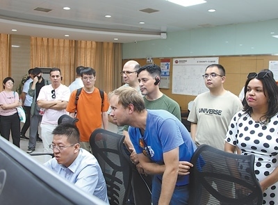 國際青年代表在玉門風(fēng)電場(chǎng)中控室參觀。圖為本報(bào)記者趙帥杰攝