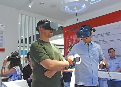 國際青年代表在玉門風(fēng)電場(chǎng)VR電力安全生產(chǎn)實(shí)訓(xùn)室體驗(yàn)。 圖為本報(bào)記者趙帥杰攝