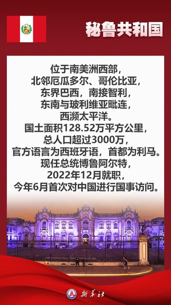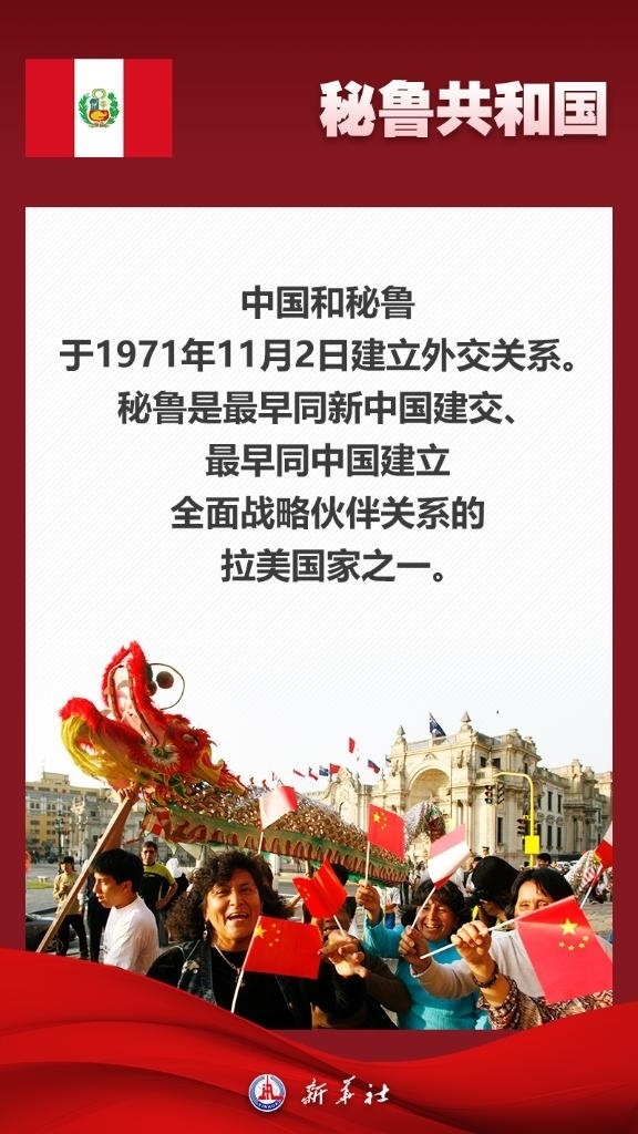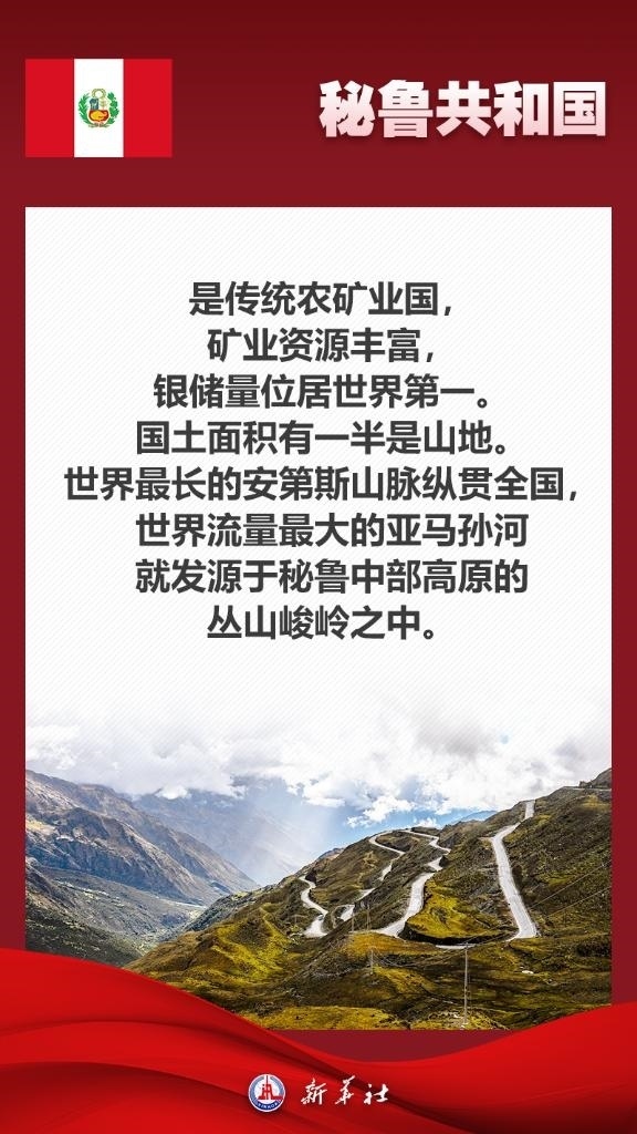 應(yīng)秘魯共和國總統(tǒng)博魯阿爾特邀請,國家主席習(xí)近平將于11月13日至17日赴利馬出席亞太經(jīng)合組織第三十一次領(lǐng)導(dǎo)人非正式會議并對秘魯進(jìn)行國事訪問。秘魯位于南美洲西部,是印加文明發(fā)祥地,也是最早同新中國建交的拉美國家之一。關(guān)于秘魯,七張海報帶你了解更多——