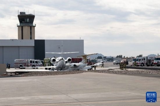 斯科茨代爾機場官員當天在新聞發(fā)布會上說,事故發(fā)生在當地時間下午2時39分,一架從得克薩斯州奧斯汀飛來的中型商務機在降落滑行時,左主起落架發(fā)生故障,飛機偏離跑道后撞上地面停放的另一架機體較大的商務飛機。