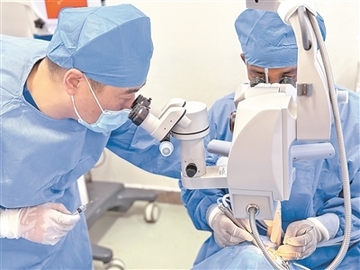 日前,埃塞俄比亞“光明行”項目在蒂魯內什—北京醫(yī)院順利實施。在為期20余天的義診活動中,來自天津市眼科醫(yī)院的“光明行”專家團隊和第二十五批中國援埃塞醫(yī)療隊憑借精湛醫(yī)術和豐富經驗,確保每一例白內障手術都取得圓滿成功。專家團隊還向當?shù)孛癖娖占鞍變日戏乐沃R,與當?shù)蒯t(yī)院開展眼科診療技術交流,分享先進技術和管理經驗,為提升埃塞俄比亞眼科醫(yī)療水平貢獻力量。埃塞俄比亞眼科醫(yī)生在中國專家的指導下參與手術,收獲經驗。當?shù)匮劭漆t(yī)生伊利卡爾·貝哈努表示:“我們從中國醫(yī)生那里學到了高水平的專業(yè)技術?!?/p>
