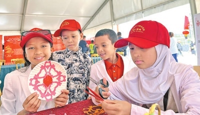 在亞的斯亞貝巴大學孔子學院,當?shù)匦∨笥洋w驗中國剪紙藝術。