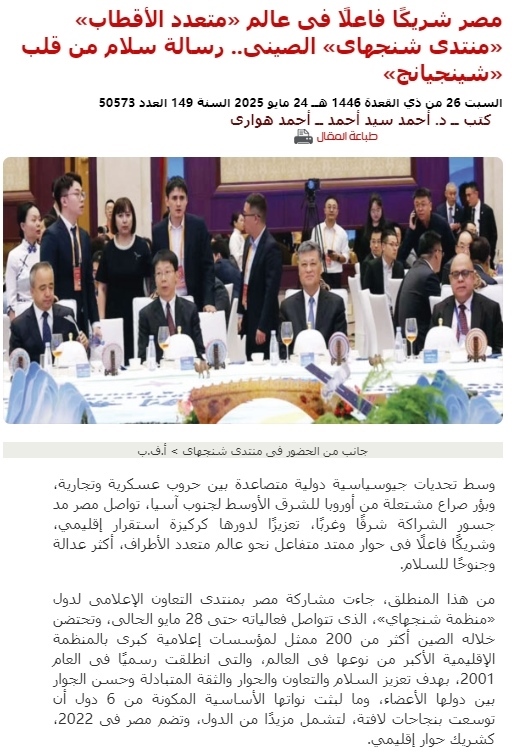 埃及《金字塔報(bào)》報(bào)道2025上合組織國(guó)家媒體合作論壇