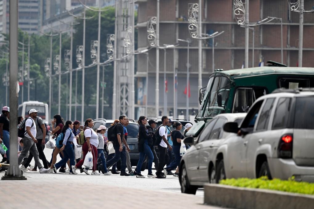 12月2日,在委內(nèi)瑞拉首都加拉加斯,行人在早高峰時(shí)段穿過玻利瓦爾大街。新華社記者李木子攝