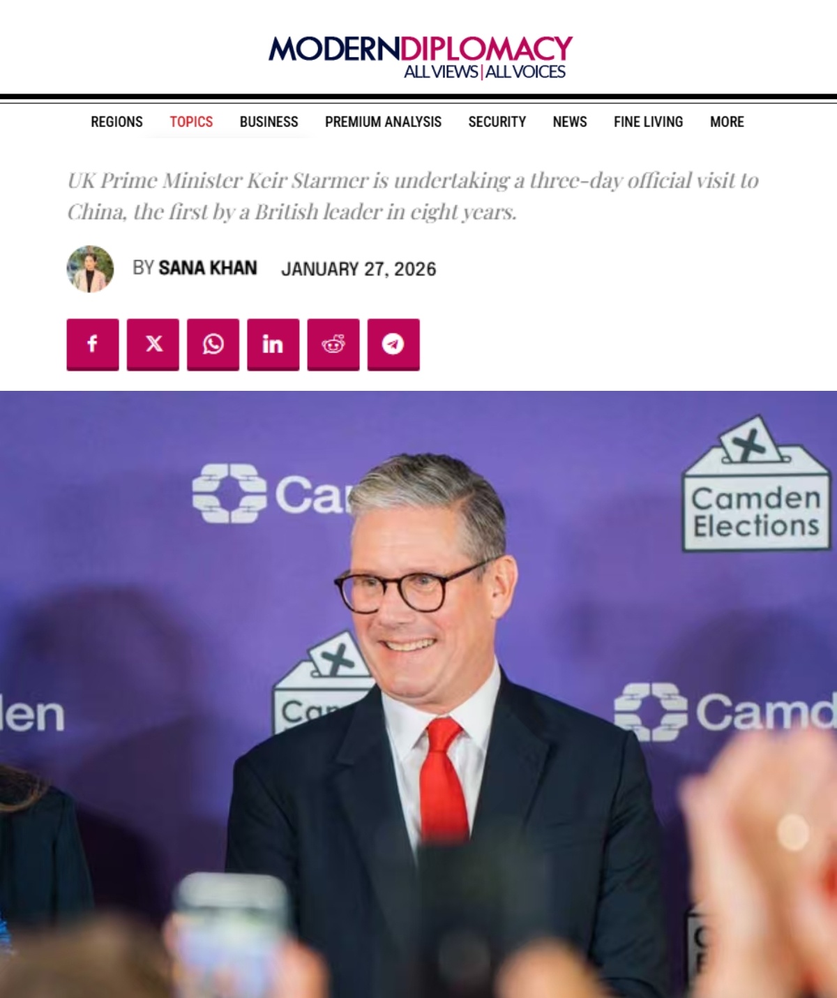 歐洲《現(xiàn)代外交》網(wǎng)站報道稱,斯塔默此行標(biāo)志著英國外交策略的轉(zhuǎn)變,倫敦正在根據(jù)地緣政治變化重新評估其全球伙伴關(guān)系。報道稱,斯塔默將探索與世界第二大經(jīng)濟(jì)體的經(jīng)濟(jì)和貿(mào)易合作途徑,旨在吸引投資,擴大英國企業(yè)的市場準(zhǔn)入,并與中國就氣候變化、人工智能和公共衛(wèi)生等共同全球關(guān)切展開交流。報道還分析稱,此次訪問展示了中等大國如何通過多元化伙伴關(guān)系來保護(hù)本國利益,以應(yīng)對國際關(guān)系中系統(tǒng)性的不確定性。