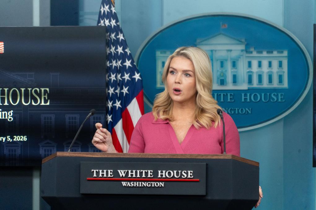 2月5日,在美國(guó)首都華盛頓,白宮新聞秘書萊維特出席記者會(huì)。新華社發(fā)(李源清攝)