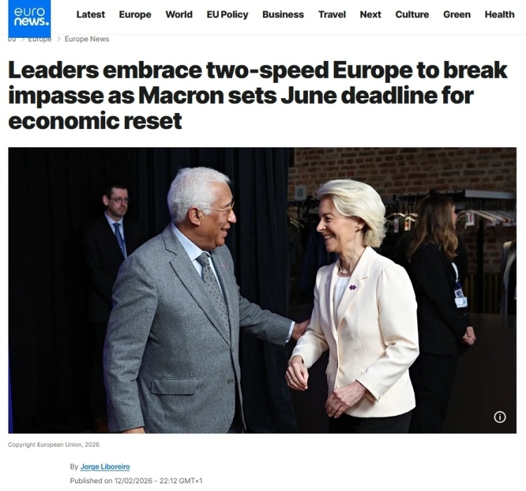 《政治報》網(wǎng)站歐洲版的報道評論稱,歐盟一直以其成員國團結(jié)一致向前邁進而自豪,那個時代已經(jīng)結(jié)束了。2月12日在比利時舉行的會議上,法國、德國、意大利等多國領(lǐng)導(dǎo)人支持,最早將于下個月的歐洲理事會上形成一項計劃,以簽署組成更小團體的倡議。各國政府表示,由于歐洲的許多想法陷入優(yōu)柔寡斷和不和諧之中,歐洲的競爭優(yōu)勢正在逐漸消失,因此他們感到一種緊迫感。