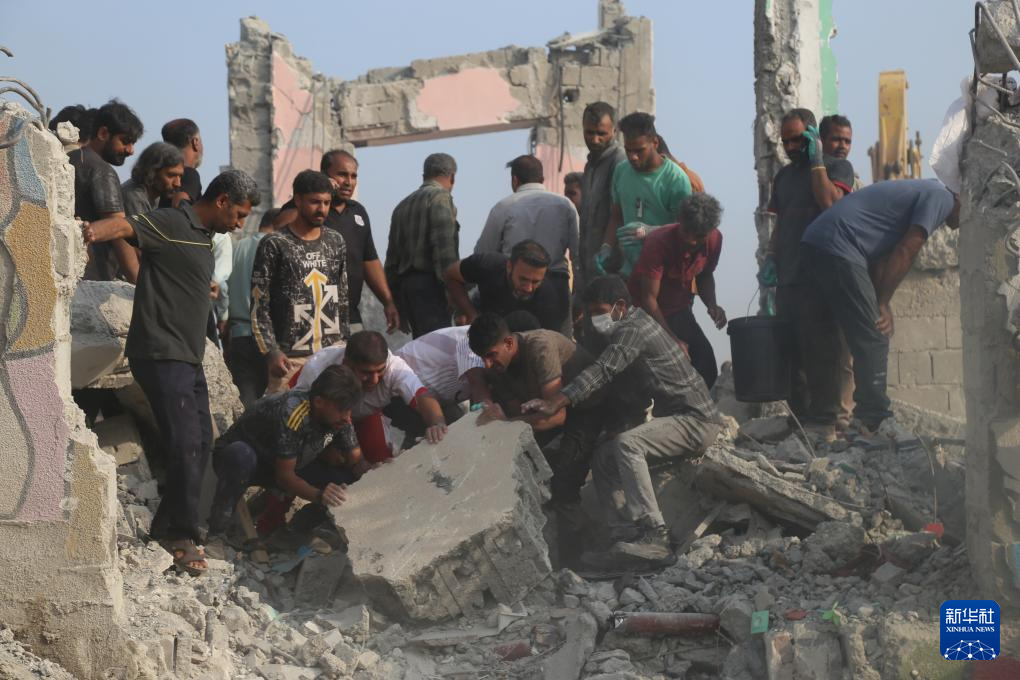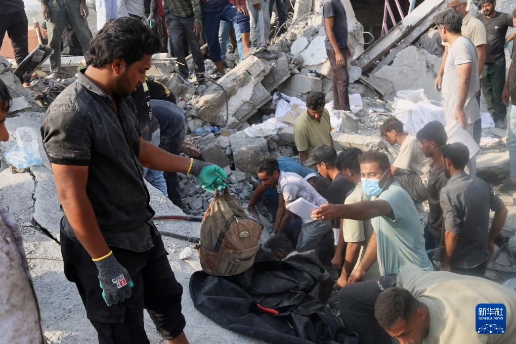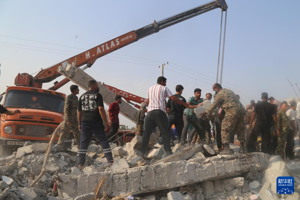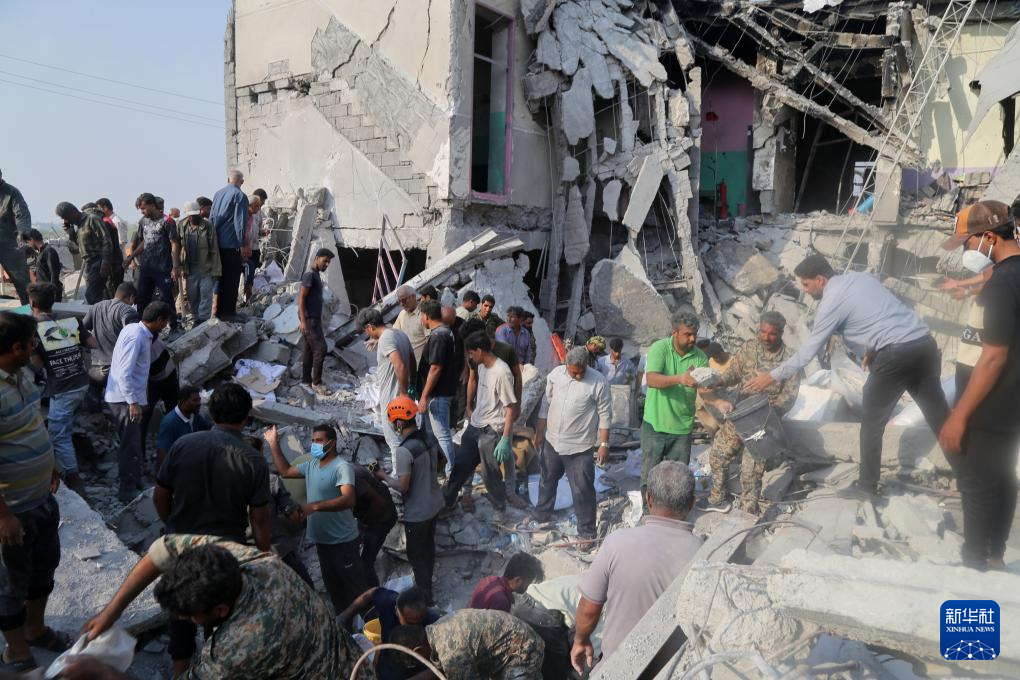 2月28日,在伊朗米納卜市一所被襲擊的小學(xué),救援人員和當?shù)鼐用裨噲D從廢墟里營救傷員。