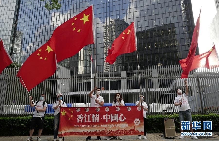 6月4日,在香港金鐘,香港市民慶祝香港特區(qū)立法會(huì)三讀通過《國(guó)歌條例草案》。當(dāng)日下午,香港特區(qū)立法會(huì)三讀通過《國(guó)歌條例草案》,《國(guó)歌條例》將于6月12日正式刊憲實(shí)施。新華社記者王申攝