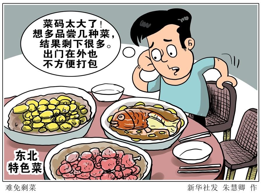 前不久從廣東來吉林旅游的張文奇體驗(yàn)了鍋包肉、鐵鍋燉魚等東北特色菜,喜愛的同時他忍不住吐槽:“菜碼太大了!想多品嘗幾種菜,結(jié)果剩下很多。出門在外也不方便打包。”