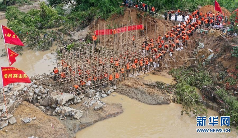 在鄱陽縣江家?guī)X村,一個排澇站突發(fā)穿孔險情??鐓^(qū)支援的上饒市信州區(qū)人武部120名民兵及時趕到,采用裝填鐵絲網(wǎng)、投放沙石袋等方法進行封堵,連續(xù)奮戰(zhàn)9個多小時,成功排除險情。