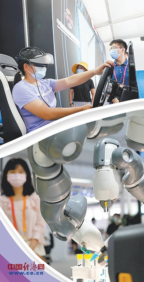 上圖:觀眾在2020服貿(mào)會5G通信服務(wù)展區(qū)體驗(yàn)5G高速網(wǎng)絡(luò)帶來的仿真駕駛。下圖:觀眾在2020服貿(mào)會服務(wù)機(jī)器人展區(qū)參觀醫(yī)用機(jī)器人。經(jīng)濟(jì)日報(bào)-中國經(jīng)濟(jì)網(wǎng)記者趙晶攝