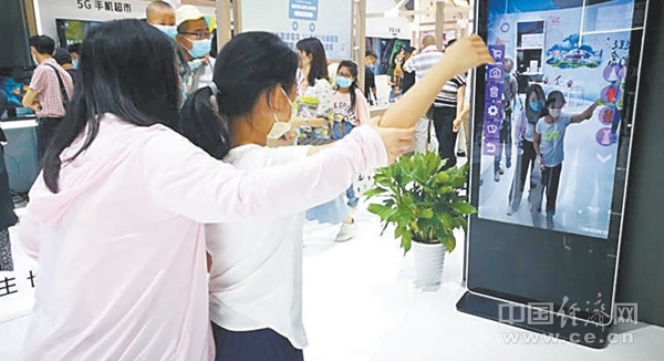 在中國聯(lián)通展臺,一款“AR試衣鏡”前不少人駐足體驗(yàn)?!皠偛朋w驗(yàn)了幾款裙子的試穿過程,挺好玩的!可以根據(jù)自己喜好選擇衣服,換衣服速度也很快!”剛帶著女兒體驗(yàn)完“AR試衣鏡”的李靜興奮地說,站在“AR試衣鏡”屏幕前,可以實(shí)時看到衣服穿到身上的效果,揮一揮手就可以更換。