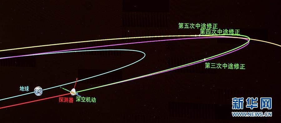 “就像汽車從一條高速公路轉向另一條高速公路時,需要打方向盤變道一樣。”專家介紹,為了減小飛行偏差,使探測器沿著預定的軌道飛行而進行的軌道控制稱作修正。改變探測器當前軌道,使其進入一條新的軌道而進行的軌道控制稱作機動。此次軌道機動在距離地球大約2940萬千米的深空實施。