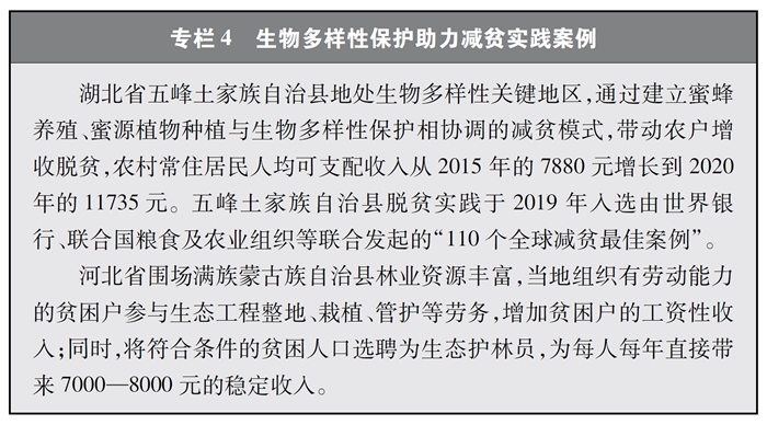 推動履約取得明顯成效。中國為推動實現(xiàn)2020年全球生物多樣性保護目標和聯(lián)合國2030年可持續(xù)發(fā)展目標作出積極貢獻。自發(fā)布《中國生物多樣性保護戰(zhàn)略與行動計劃》(2011-2030年)以來,中國通過完善法律法規(guī)和體制機制、加強就地和遷地保護、推動公眾參與、深化國際合作等政策措施,有力推動改善了生態(tài)環(huán)境。其中,設(shè)立陸地自然保護區(qū)、恢復和保障重要生態(tài)系統(tǒng)服務(wù)、增加生態(tài)系統(tǒng)的復原力和碳儲量等3項目標超額完成,生物多樣性主流化、可持續(xù)管理農(nóng)林漁業(yè)、可持續(xù)生產(chǎn)和消費等13項目標取得良好進展。
