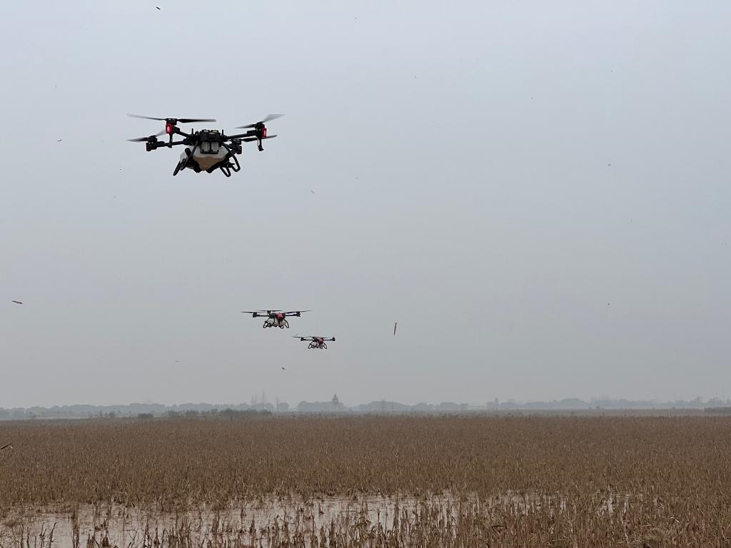 “地不凍,只管種?!笔罘逭f,無人機(jī)的快速撒播可以讓種子在土地上凍前及時(shí)入土,而且播撒均勻,省時(shí)省力,一架無人機(jī)一天可以飛播300畝以上,確保小麥及時(shí)足額足面積播種。